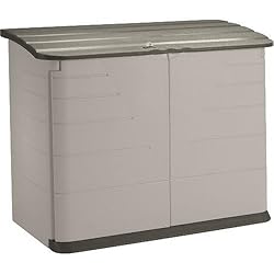 The Rubbermaid 3747 Large Horizontal Shed boasts 32 cubic feet of storage space, tough, durable floors, and molded-in grooves for one shelf (not included). This shed also has a hinged roof design with prop bar which provides easy accessibility to contents inside and lockable doors on the front (lock not included). Assembly is quick and easy with the interlocking panels.