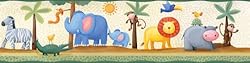 RMK1137BCS Features: -Wall border. -Friendly and adorable one. -Fun alligators, gentle lions and tigers, funky monkeys, docile elephant, Zebra, colorful Giraffes, chunky hippo and rhinos. -Great fun and smiles guaranteed with this terrific looking peel and stick border.