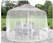 Outdoor Umbrella Table Screen (for 9' Diameter Umbrellas)Enjoy outdoor entertaining without pesky mosquitoes. Keep pests from bothering your outdoor fun. No more mosquito bites or flies nipping at your food.Enjoy the benefits of a screened porch for a fraction of the cost. Say goodbye to pesky mosquitoes, flies, bees, wasps and other flying insects.Fits patio umbrellas up to 9' in diameter.Features:Fully adjustable in diameter and height with drawstring top closure Large zippered entrance Bottom with built in water fillable tube keeps screen in place See thru mesh won't ruin your view