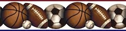 RMK1000BCS Features: -Wall border. -Painterly but realistically rendered soccer balls, basketballs, footballs and baseballs will appeal to all sports fans. -Big and small. -Coordinates with all juvenile sports bedding sets available in the marketplace.