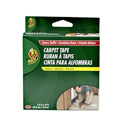 The Henkel Duck professional cloth carpet tape is designed use with foam/rubber, woven polypropylene, and jute-backed carpets. It has a double-sided permanent adhesive, providing excellent adhesion to both smooth and rough surfaces. The tape features durable, tear-resistant cloth construction, ideal for high-traffic areas such as living rooms and hallways and is recommended for permanent, indoor carpet installation. The tape is 1.41 inches wide and 42 feet long.