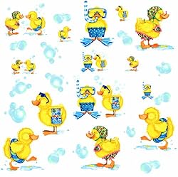 RMK1261SCS Features: -Wall sticker. -Fluffy duckies are all decked out for some fun in the tub. -Comes with tons of light and airy bubbles. -Decorates your bathroom in seconds. -Works on tiles and any smooth surface.
