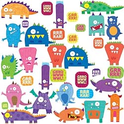 (More customer reviews)I was pleasantly surprised when I opened these up, they are MUCH bigger than I anticipated! I bought them to use as decorations for my little one's Monster Themed birthday party. We actually put them up all along the base of our large island we have in the kitchen/living area just yesterday. He had some much fun with it and crawls right to them every chance he gets to point and "talk" to them. I put a few on the mirror in his bathroom, too, which he looks right to and giggles. Simple joys. They are easily removable and will find homes elsewhere around the house after the party, Im sure. Very cute, non-scary monsters :)