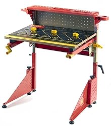 (More customer reviews)I bought this for my Grandson, he's been hitting me up for a workbench for sometime now. First impressions are how heavy it was when grabbing it off the shelf. When I got it home I saw why. It's almost entirely made from steel, very little plastic on this little gem.