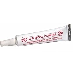 G-S Hypo Cement Great For Crafts & Hobbies. This is a new tube of G-S hypo cement. Great for model building, ceramic and plastic repair, fly fishing lures, watch crystals, jewelry repair, bead crafts, fine screw locking and industrial applications.Just a small amount on knots and they will never come loose. Precision applicator for fine detail work. Mess free, non-brittle and dries clear. This tube contains 0.33 fl oz (9.75 ml).