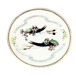 This 8 inch porcelain appetizer plate illustrates the words of the traditional Christmas carol "The Twelve Days of Christmas" with a whimsical interpretation of the 12 gifts by talented artist Patience Brewster. Day 12 features, what else, frog lords-aleaping! Christmas Krinkles are a product of Department 56.