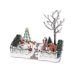 Everything you remember from the front yard is featured in this lighted yard scene -- Santa, a snowman, a lighted manager and decorative Christmas trees.The garlands on the picket fence complete the over-decorated look. This is an exclusive product made by Department 56.