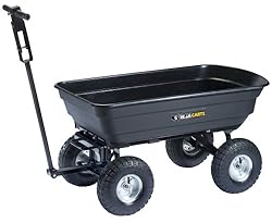 This 600 pound capacity dumping Gorilla Cart is perfect for lawn and landscaping projects, as well as work around the garden. Simple, balanced dumping minimizes strain, and the wide-profile 10-inch pneumatic turf tires are designed to tackle any terrain.Features an exclusive 2-in-1 handle that can be pulled by hand or easily converted to a hitch and be pulled behind a lawn tractor.The durable, molded bed won't rust, cleans easily, and is virtually maintenance-free.This is the perfect new tool for any lawn and garden enthusiast.