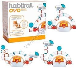 The Habitrail® OVO Studio Habitat allows you to design the living environment for your hamster - you can create up to 4 different design possibilities. The OVO Studio has more room to let your hamster roam to the different hideaways. Your hamster can choose from many locations to snooze, hide, play and jet up for a quick snack in his cozy Mini Maze.The Mini Maze comes complete with the interactive chewable maze, providing hours of foraging fun for your hamster. The Mini Maze has two openings which provide easy access to your hamster. No Mess and Easy to Clean? High molded walls to keep your hamster's bedding inside his home, and not all over your table or floor.Fresh Food for Longer!? The food dish is now raised high above the floor to help stop waste and bedding (Yuk!) from getting in your hamster's food.Easy Access to Water!? The design of our clever new water bottle makes it easy for you to fill and for your hamster to drink.If You Build It - He Will Burrow!? Building your hamster's dream home is no problem with our new patented Habitrail® OVO Lock Connectors. They easily twist and firmly lock the tunnels, tubes and nesting areas together so you can build any creation you can imagine.Includes: ? Cage? Mini Maze with Interactive Chewable Maze? Water Bottle? 2 Tees? 3 Elbows ? 2 Cubes? 4 Curves? 1 U-Turn? 7 Windows? 15 Lock Connectors