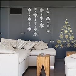 Click Here to see more reviews about: Christmas Holiday Time Reusable Wall Decoration Stickers - Ornate Glittery Silver Snowflakes