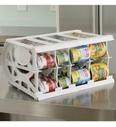 (More customer reviews)These are well made and work as advertised. However, do not be fooled by the pictures on their website or here on Amazon. Those are 40oz cans that they show in the pictures to make it look like an efficient use of space. You could get 4-5 times more 14.5oz cans in the same amount of space as this unit takes. So if you are going to store 31-40oz cans, they are great. If you were expecting to store regular 14.5oz cans, it is a tremendous waste of space. Also, their picture on the website makes it look as though these units will fit in a regular 12" deep cabinet. No way! This unit is 16.5" deep. It is huge! It won't even fit on my pantry shelves until I add another 1 1/2" of shelf depth.