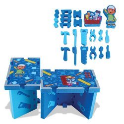Now you can be handy just like Manny and build your own table! This safe and sturdy table is made of high density foam and transforms into?four?different table styles. 18 pop-out characters and shapes make for even more fun. Easy to clean surface. Easy assembly, no tools required. Made in the USA. Eco-friendly and recyclable. Maximum weight limit of 50?pounds.